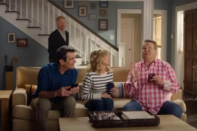 - The 30-second spot opens with Phil, Claire and Cam gushing about a “precious" photo of Haley and Dylan’s twins. Enter Mitchell who is quite unhappy he did not receive the photo because he had been left off the family group chat. “Shame, shame," scolds Mitchell, to which Cam responds, “It’s not you. It’s your new phone."