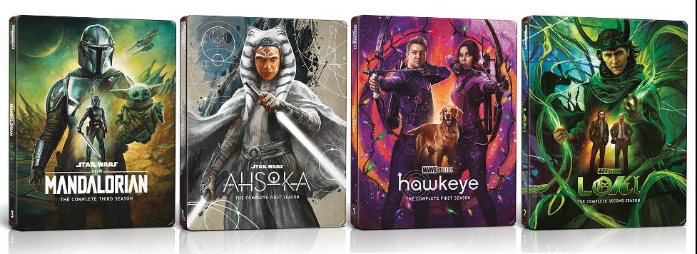 Today Disney Post-Theatrical announced that four more seasons of Disney+ original series are coming to physical media just in time for the holiday season this year: The Mandalorian season 3, Star Wars: Ahsoka season 1, Hawkeye season 1, and Loki season 2.
