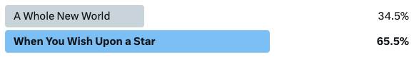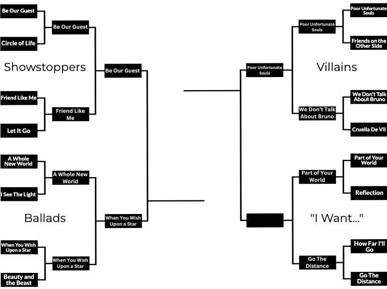 Before we move on to our next matchup, let’s take a look at our last result. Ladies and gentlemen, we may have a new odds-on favorite to win it all. “When You Wish Upon a Star" dethroned the top-seeded “A Whole New World" and made it look easy. The Pinocchio favorite may just go on to claim the crown. You know, as dreamers do.