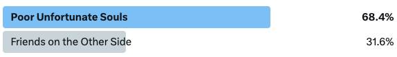 Before we move on to our next matchup, let’s take a look at our last result. The top seed in the Villains region did not disappoint as “Poor Unfortunate Souls" handily defeated “Friends on the Other Side" to move on to the second round.