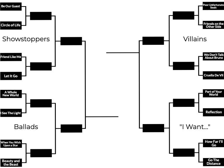 Welcome to the opening round of our 10th annual Mouse Madness tournament! This year, we are attempting to crown the best Disney song. We have looked back at all of our favorite songs from animated Disney films and, through some careful planning, we have narrowed the field down to 16 classic songs and two of them will square off each day until we have our champion.