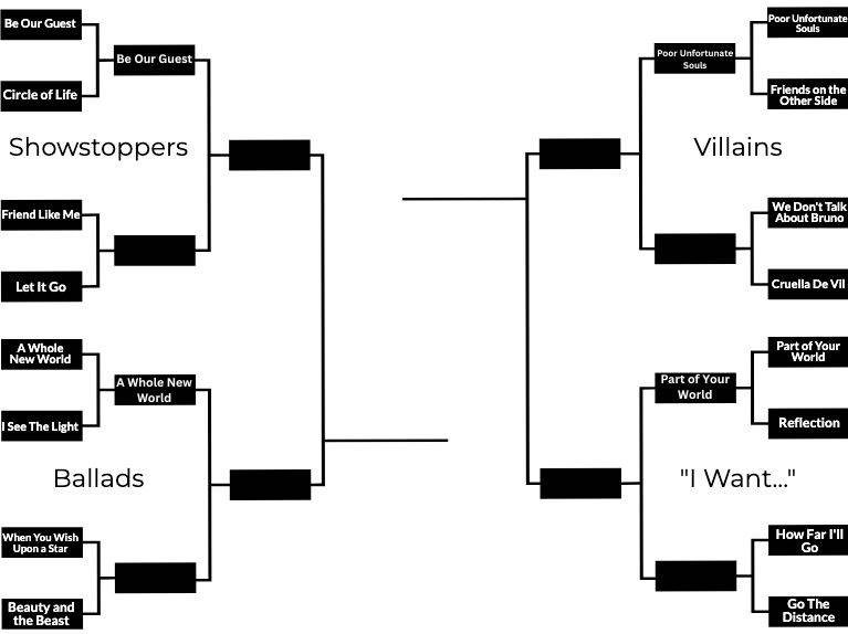 Before we move on to our next matchup, let’s take a look at our last result. We had our first blowout of the tournament. The top-seeded “Part of Your World" grabbed an early lead against “Reflection" and never looked back.