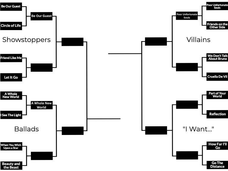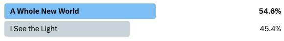 Before we move on to our next matchup, let’s take a look at our last result. It was a close, back-and-forth matchup but “A Whole New World" will be moving into a whole new round after an early upset scare against “I See the Light."