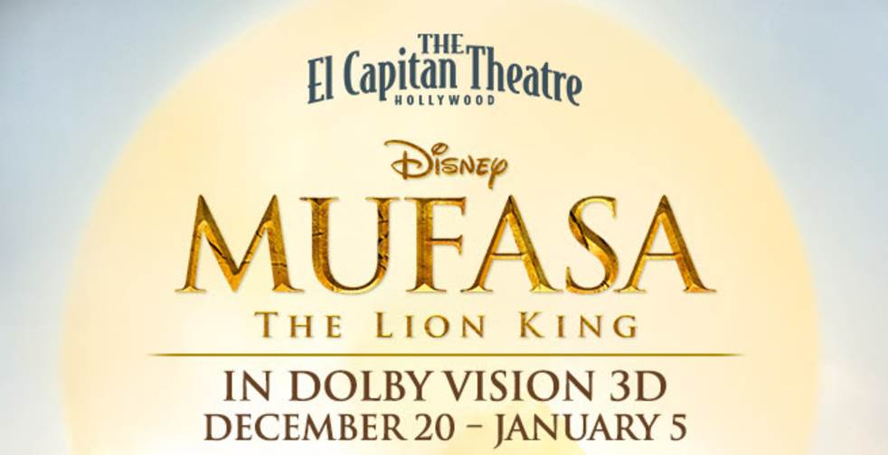 - For Pride Rock’s biggest fans, check out El Capitan’s Mufasa: The Lion King - Fan Event in Dolby Vision 3D on December 20th at 7:15pm.