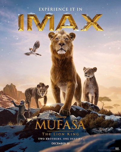 - Featuring songs by Lin-Manuel Miranda (Moana, Encanto), Mufasa: The Lion King hits theaters December 20th, 2024.