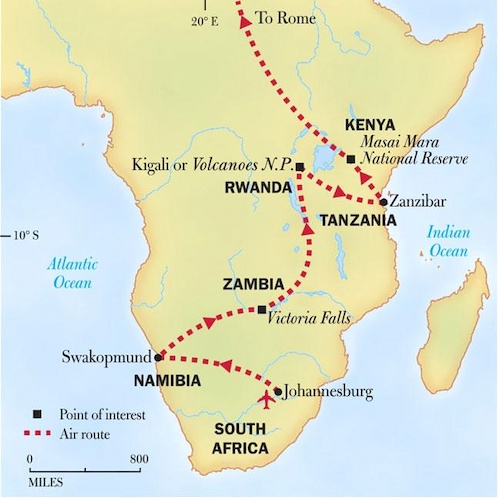 Taking place from July 12-25, 2026, the expedition will kick off in Johannesburg, South Africa before heading to Namibia, Zambia, Rwanda, Tanzania, Kenya, and Italy.