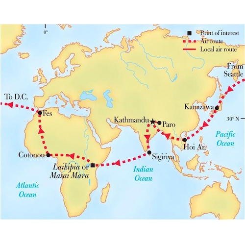 Embark on a 24 day journey around the world, as you visit 8 remarkable destinations hand picked by National Geographic photographers. This awe inspiring trip will take travelers to some of the world’s most incredible places, such as Japa’s Kenroku-en Garden, Bhutan’s Tiger’s Nest Temple nestled into the Himalayan mountains, the souks and medinas of Morocco, and more. Other destinations include stops in Vietnam, Nepal, Sri Lanka, Kenya, Benin, and Washington, DC.