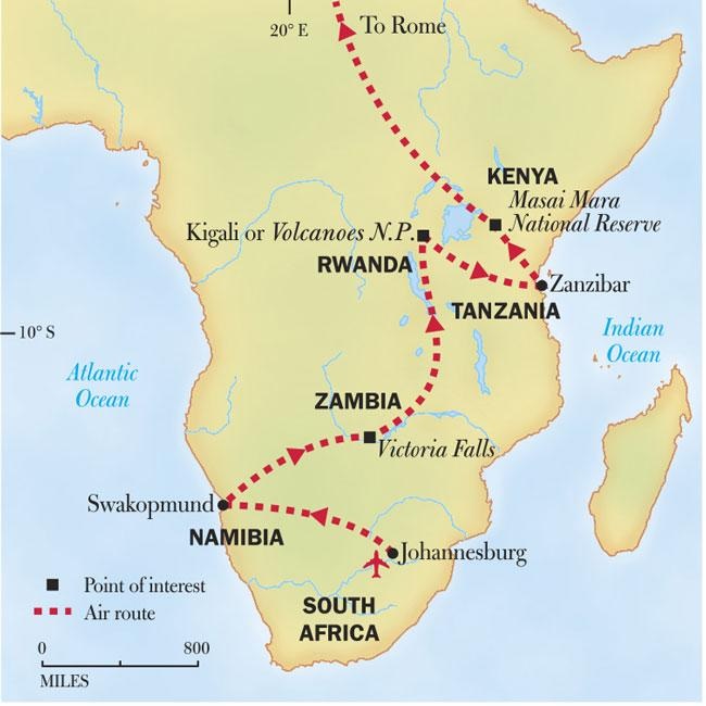 Taking place from July 12-25, 2026, the expedition will kick off in Johannesburg, South Africa before heading to Namibia, Zambia, Rwanda, Tanzania, Kenya, and Italy.