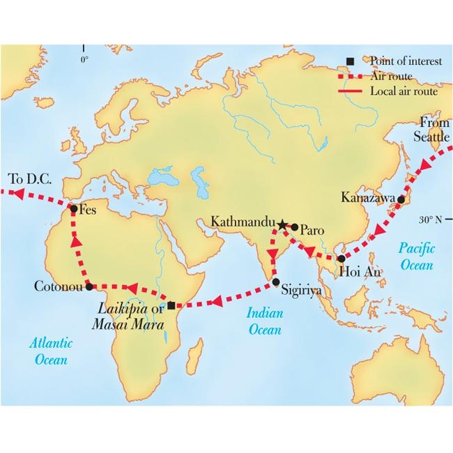 Embark on a 24 day journey around the world, as you visit 8 remarkable destinations hand picked by National Geographic photographers. This awe inspiring trip will take travelers to some of the world’s most incredible places, such as Japa’s Kenroku-en Garden, Bhutan’s Tiger’s Nest Temple nestled into the Himalayan mountains, the souks and medinas of Morocco, and more. Other destinations include stops in Vietnam, Nepal, Sri Lanka, Kenya, Benin, and Washington, DC.
