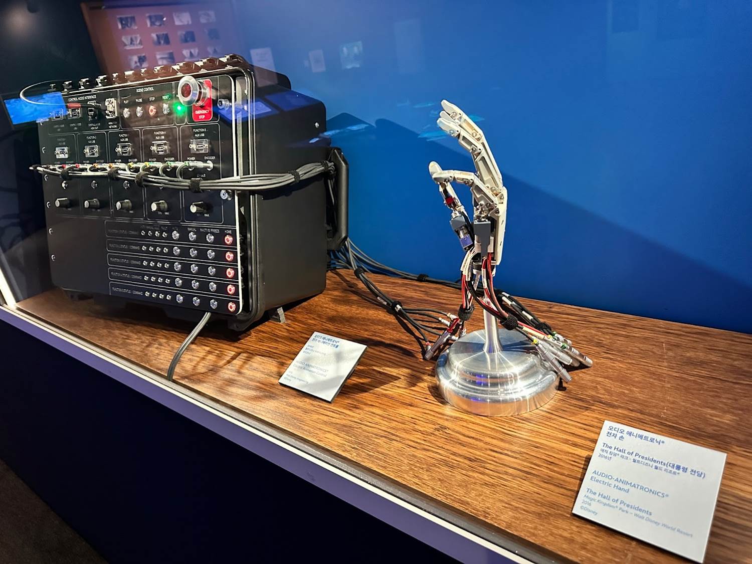 The exhibition also includes several interactive experiences, such as a “Realtime Rocket" (a chance to try your hand at some real-time motion capture technology) or to do a little programming of an Audio-Animatronic hand from one of the Presidents from the Hall of Presidents attraction in the Magic Kingdom.