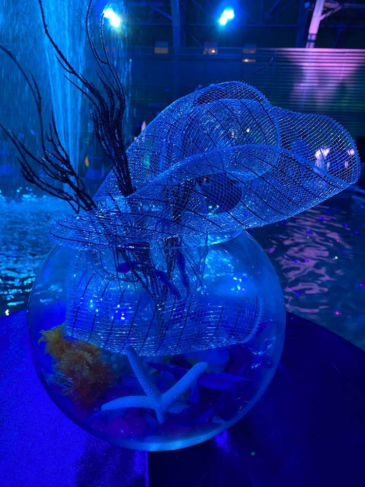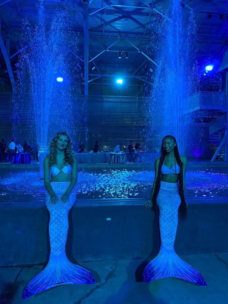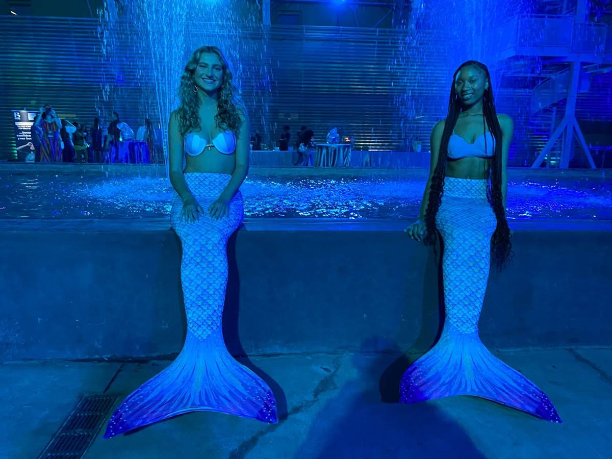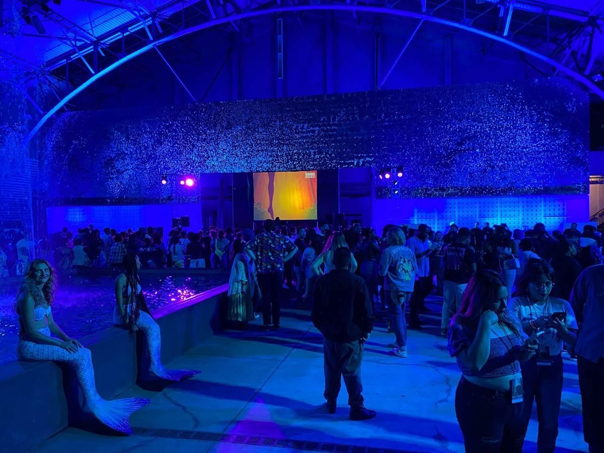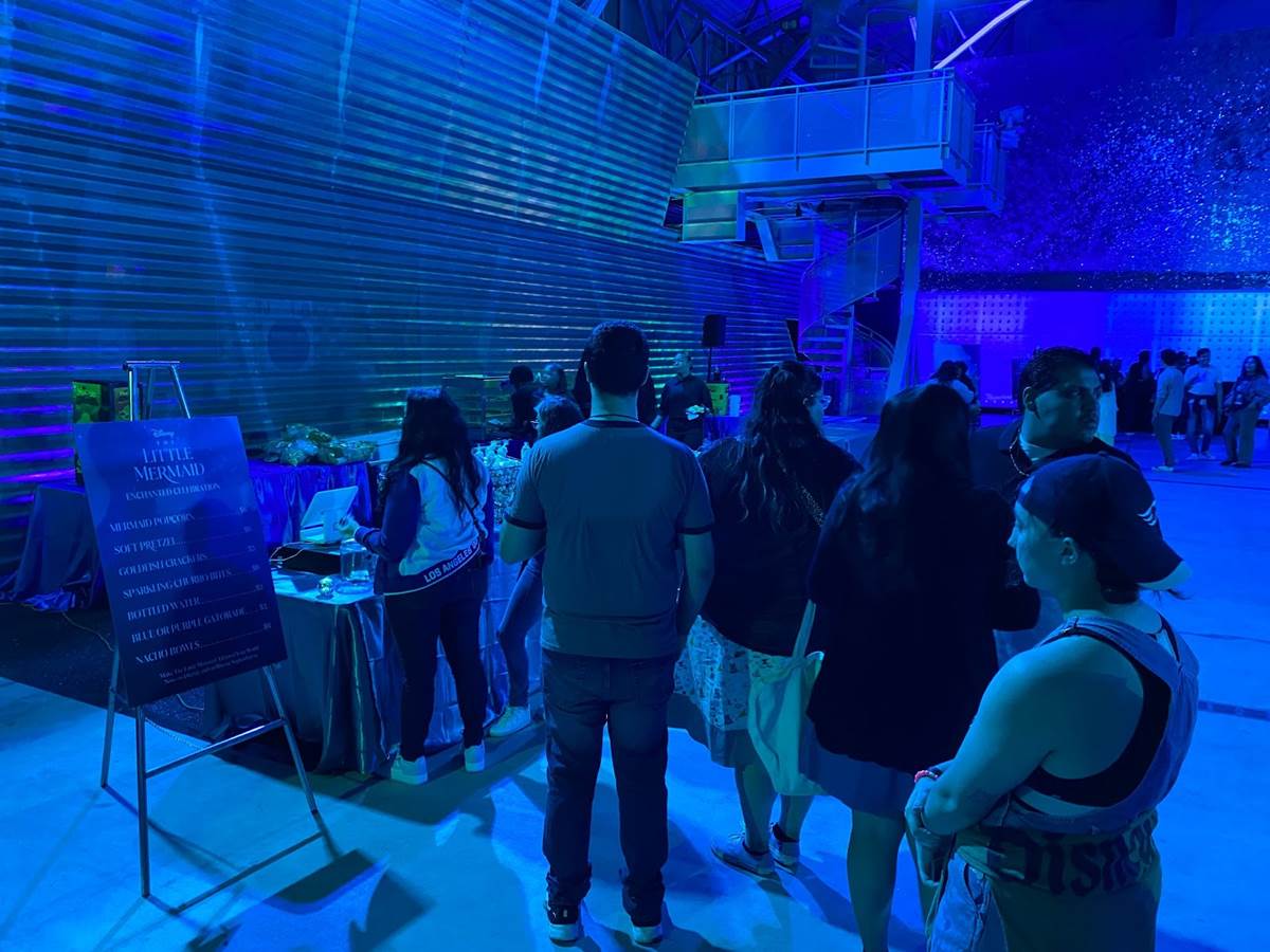 The California Science Center’s event space was impressive in its own right, and featured a fountain pool in its center, on which were perched two real-life mermaids. There was also a DJ booth set up at the front of the room and food stands around the area for guests to purchase themed snacks and (non-alcoholic) drinks.