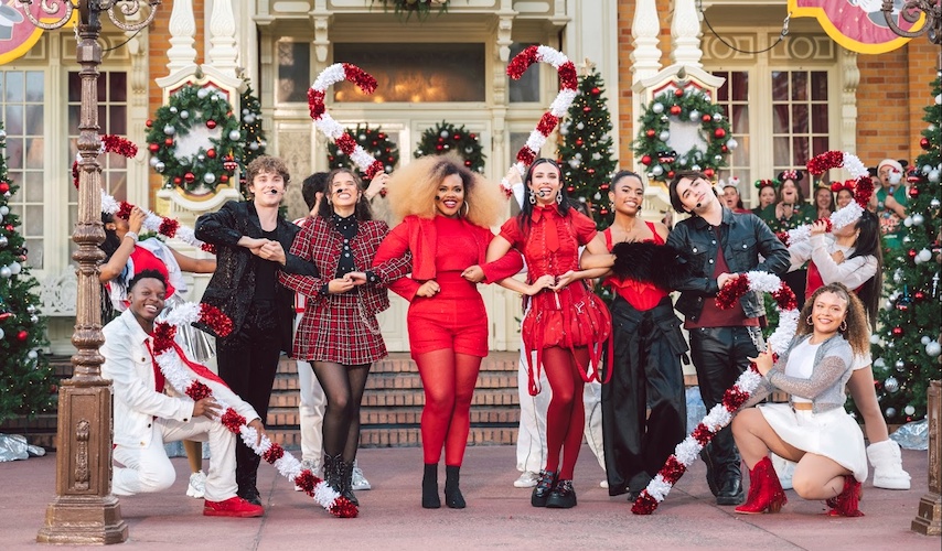 - Cast members Kylie Cantrall, Malia Baker, Joshua Colley, Dara Renee, Morgan Dudley and Peder Lindell appeared in front of the Town Square Theatre at the Magic Kingdom to perform two holiday songs from the franchise.