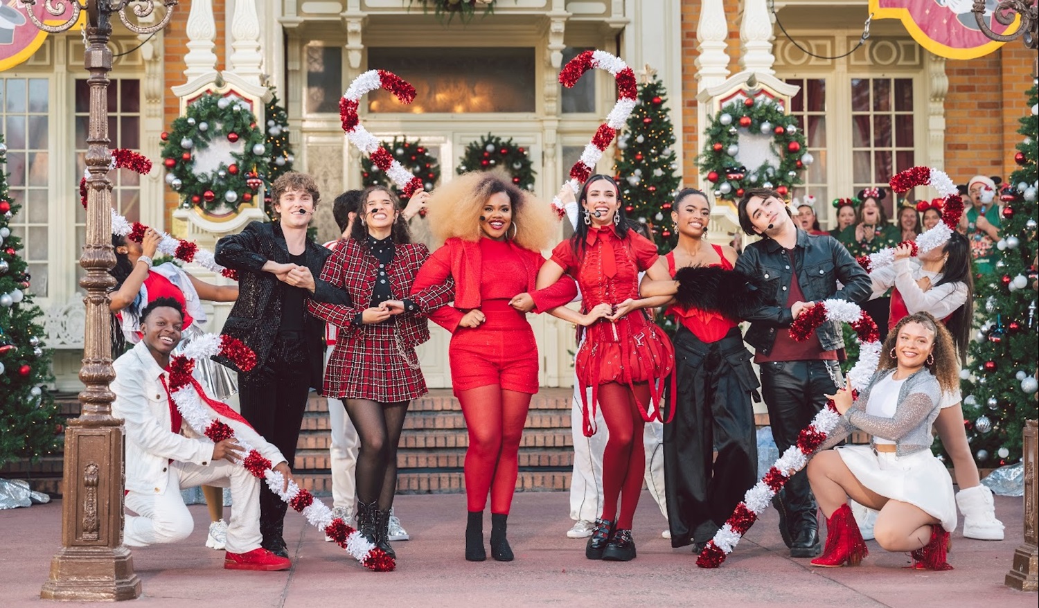 - Cast members Kylie Cantrall, Malia Baker, Joshua Colley, Dara Renee, Morgan Dudley and Peder Lindell appeared in front of the Town Square Theatre at the Magic Kingdom to perform two holiday songs from the franchise.