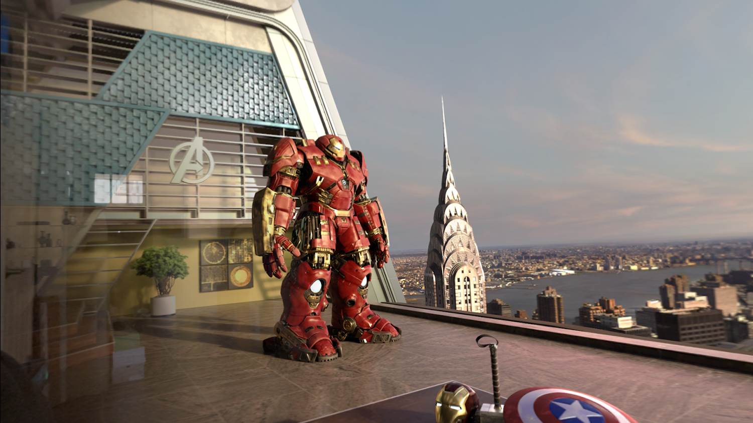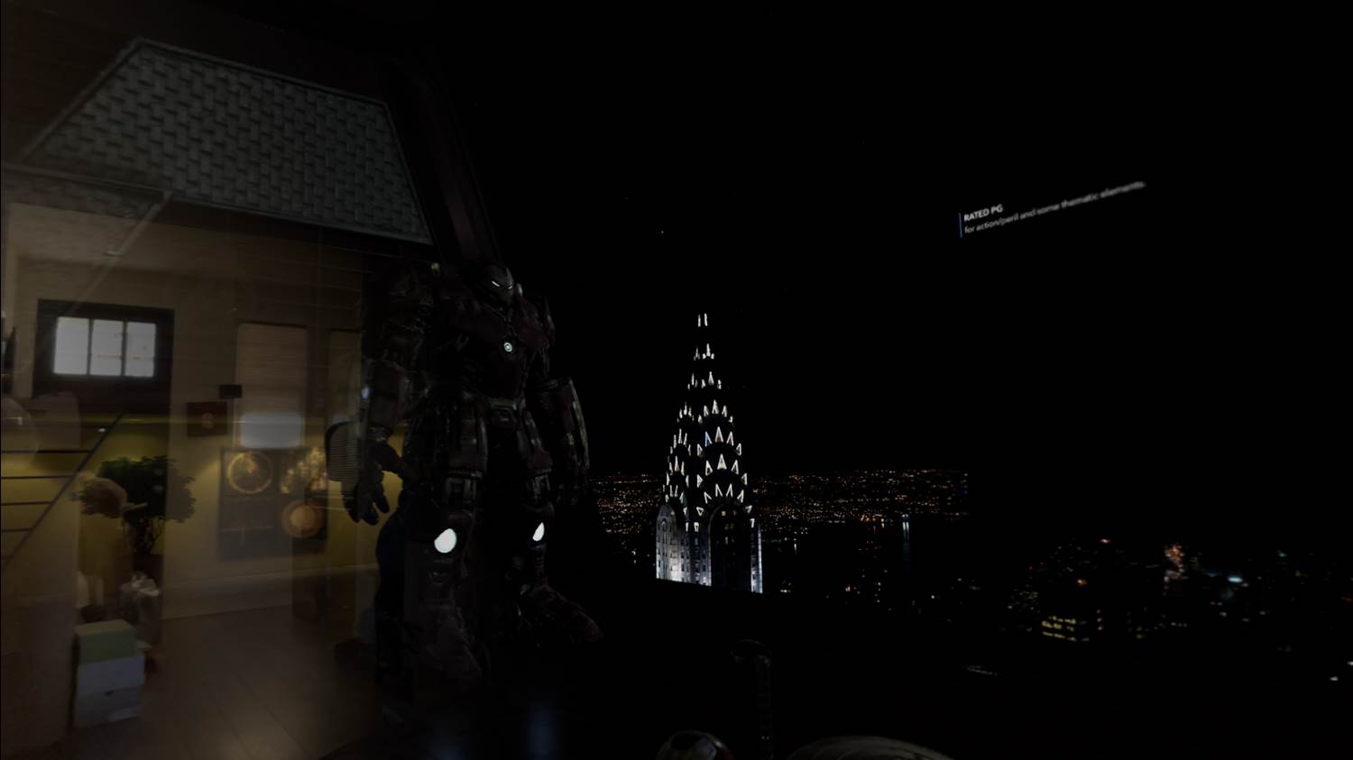 As with the Disney+ Theater, when you play content in these other spaces, the world switches to night mode. From Avengers Tower, this means some pretty cool glowing visuals are in your peripheral.