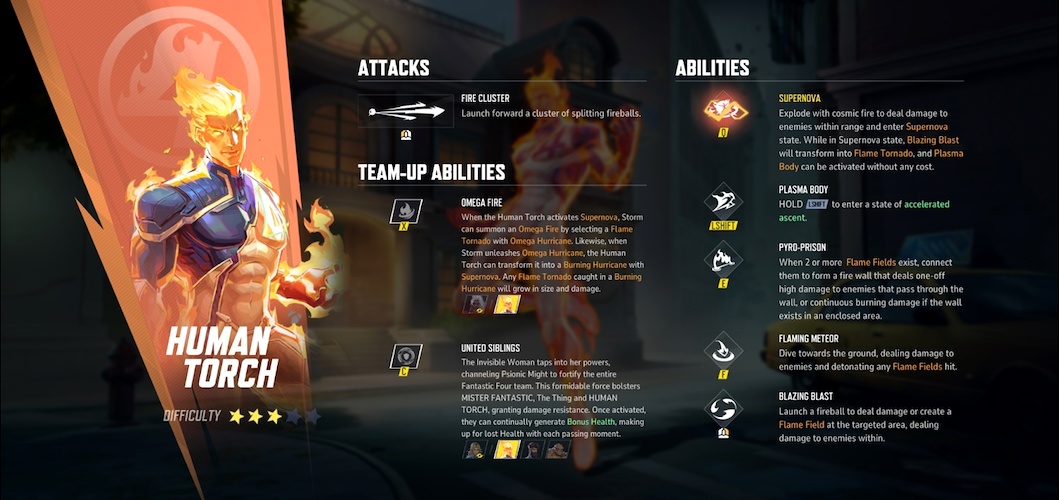 Here’s a full list of Human Torch’s full list of abilities for those looking for a more indepth look at the character’s move set.
