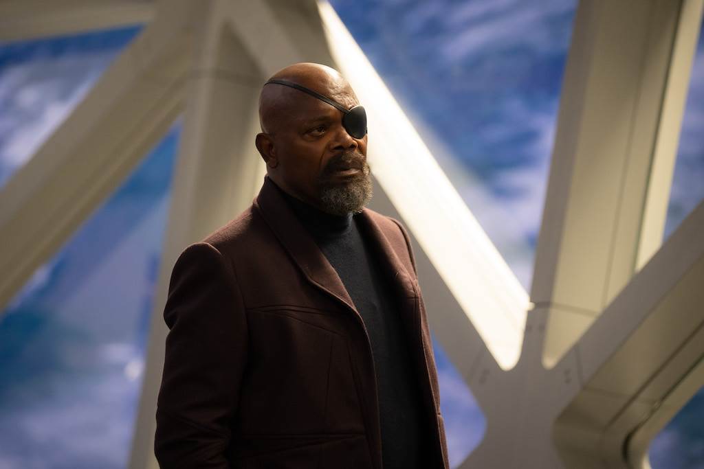Marvel has taken fans though the galaxy with the Guardians and Thor, but this is the first time where we see humans (among other species) living and working comfortably in outer space and it’s pretty awesome. Nick Fury (Samuel L. Jackson) and Monica are running the cosmic intelligence base S.W.O.R.D. and both seem happy with their jobs. As for Carol she too is in a space—with Goose the Flerkin—and is the most settled we’ve seen her.