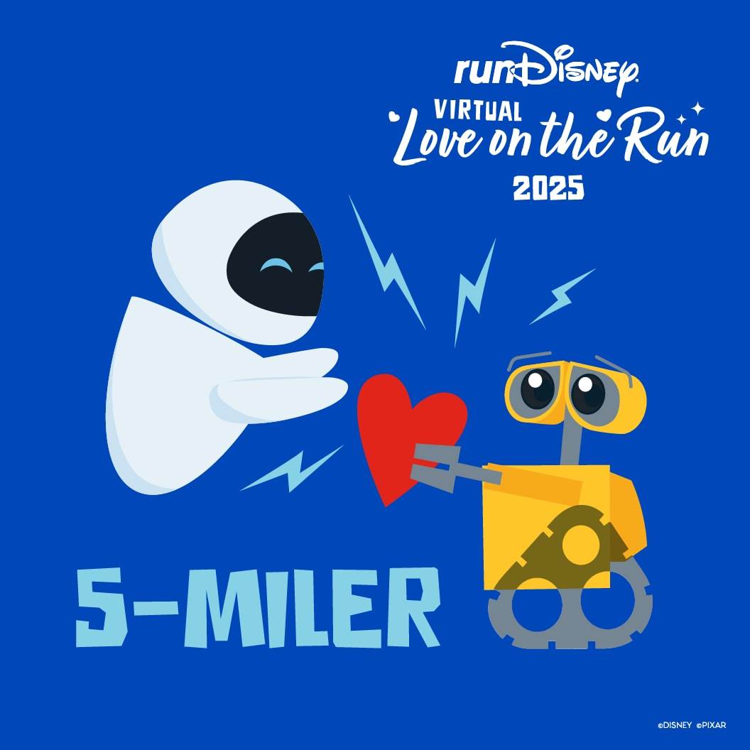 - Next up is the 5-miler, featuring WALL-E and EVE. Celebrate the adventures love brings with this second challenge.