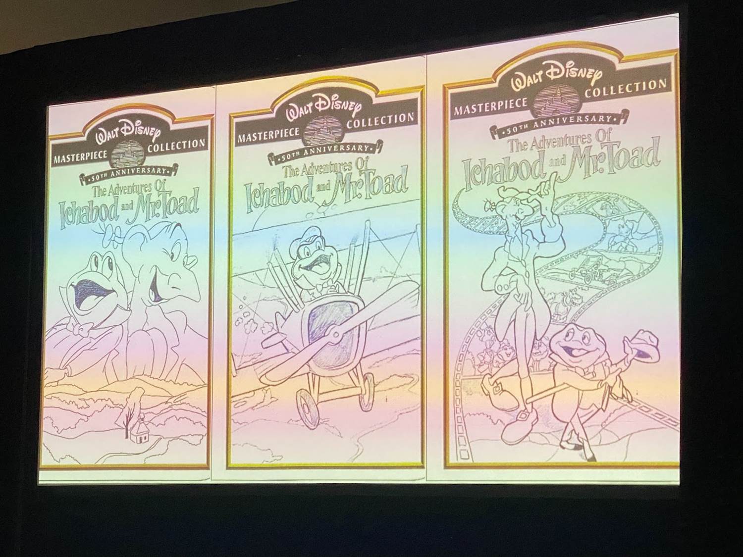 They discussed the origins of the VHS cover for The Lion King 2: Simba’s Pride, and the research that went into the design for the VHS cover of The Adventures of Ichabod and Mr. Toad– Rick rode the Mr. Toad’s Wild Ride attraction at Disneyland around 50 times. On the final version of the cover, Law was disappointed to find that Disney had flipped the direction of the film strip, which “makes it look like they’re walking off a cliff." They also covered The Rescuers Down Under, for which he “had to draw a lot of mice."