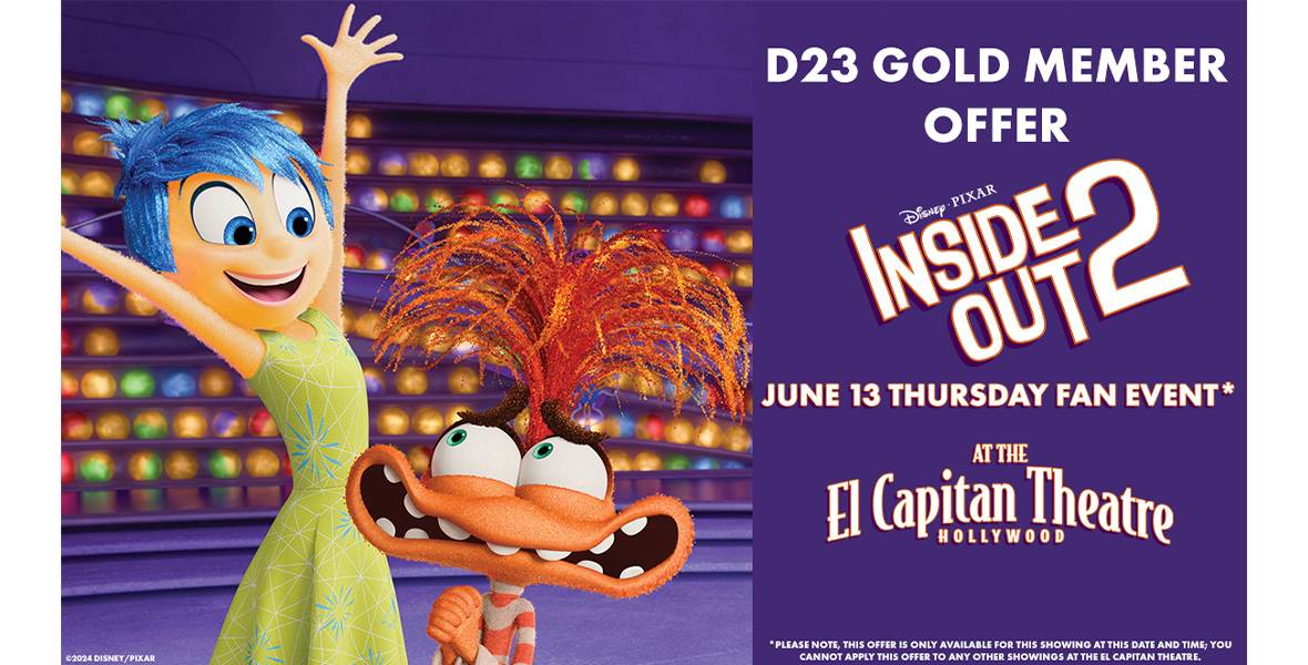 - D23 has announced on its website that Gold Members can save over 10% on tickets to the upcoming Inside Out 2 premiere event at the historic El Capitan Theatre in Hollywood, CA.