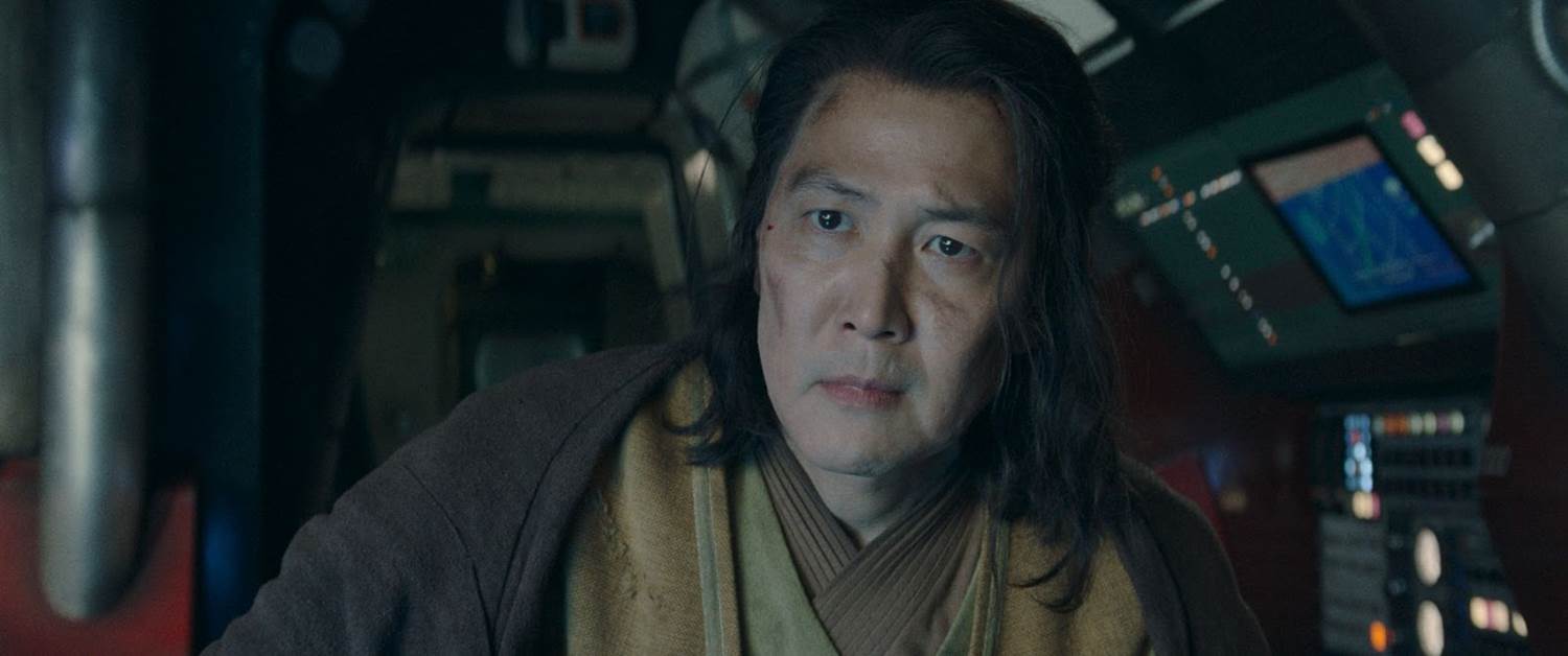 “Teach / Corrupt" begins with Osha (played by Amandla Stenberg) waking up in a mysterious cave on an “Unknown Planet"-- seriously, that’s what it’s called in a caption– where she meets a small elephant-bird-like creature and finds Mae’s daggers. Then she exits the cave to reveal an island that looks an awful lot like Ahch-To from Star Wars: The Last Jedi, but with no Porgs. Back on Khofar, Master Sol (Lee Jung-jae) takes off in the Jedi transport ship with Mae (also Stenberg) aboard posing as Osha. Sol attempts to send a distress call to the Jedi Temple on Coruscant, but there’s interference and he has trouble communicating with its recipient. Here’s where Mae enters the cockpit apparently with the intent of killing Sol, but instead he asks her to take the wheel as he goes back into the hold and breaks down over his entire team having been wiped out on the planet. Meanwhile, Bazil (Hassan Taj) remains suspicious of Mae due to her scent, and makes an effort to reactivate and recharge Osha’s PIP droid.