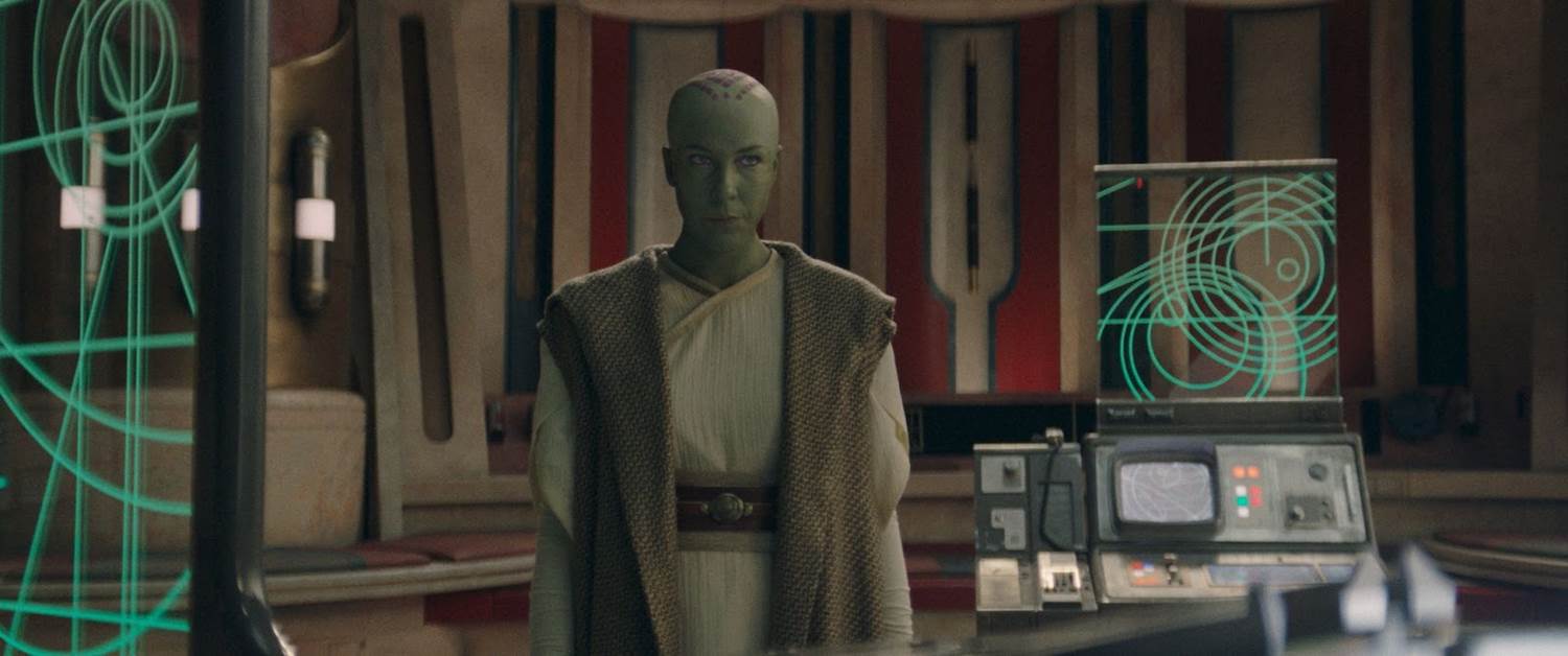 Bazil confronts Mae and flees, Mae resets PIP to its factory settings, and Osha continues her heart-to-heart with Qimir, who drops a few more clues about his background (he was once a Jedi “a long time ago" and eventually felt abandoned by a master of some kind– be it Jedi or otherwise) and even talks about his Cortosis helmet. As Mae pursues Bazil through the ship, she encounters Sol, who wonders why he couldn’t see through Qimir’s disguise. “He fooled us all," she says, fully knowing that Sol also can’t see through her impression of her sister. And just as Sol is about to spill the beans about their past, the ship comes to life again, and Bazil finds Sol, who immediately stun-blasts Mae, then deactivates his transponder and jumps to hyperspace before Vernestra’s rescue team can arrive. Rwoh lands on Khofar, investigates the site of Kelnacca’s hut and the surrounding area where the Jedi were killed, and uses her light-whip (for the first time in live-action!) to take down an Umbramoth before she delivers an obviously ADR’d line about preparing the Jedi’s bodies for burial.