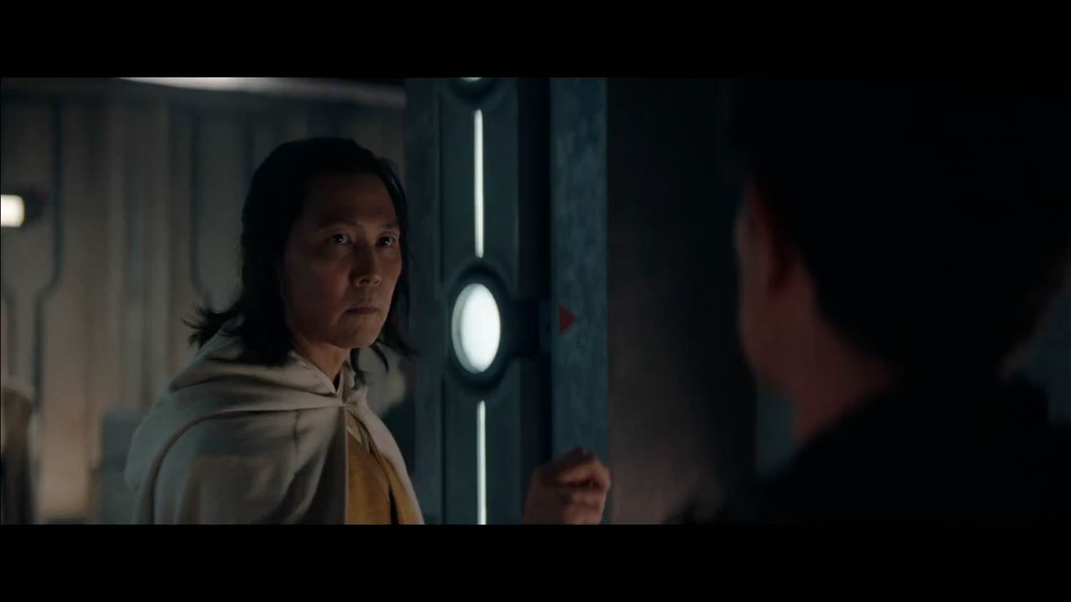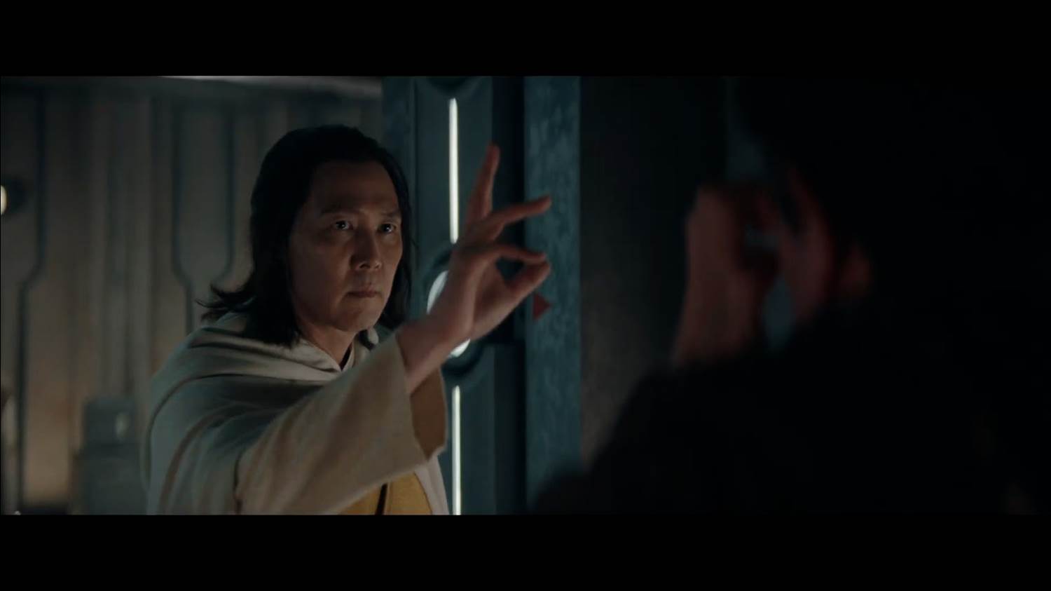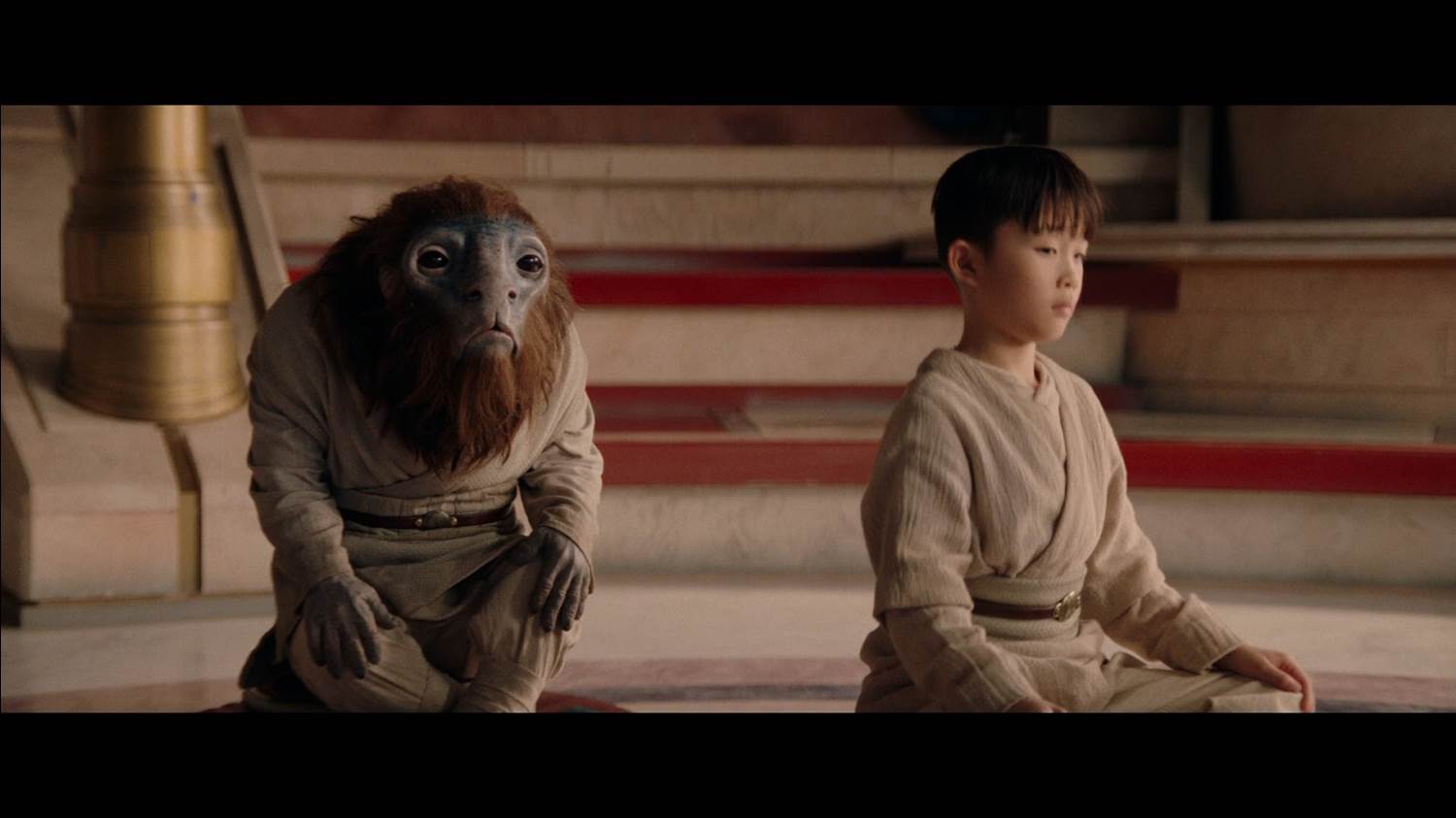 Shot #2: We fade in on another human Youngling, and the legs of a cloaked Jedi Master walk past her. This is Sol, played by Korean actor Lee Jung-jae (best known for Hunt).