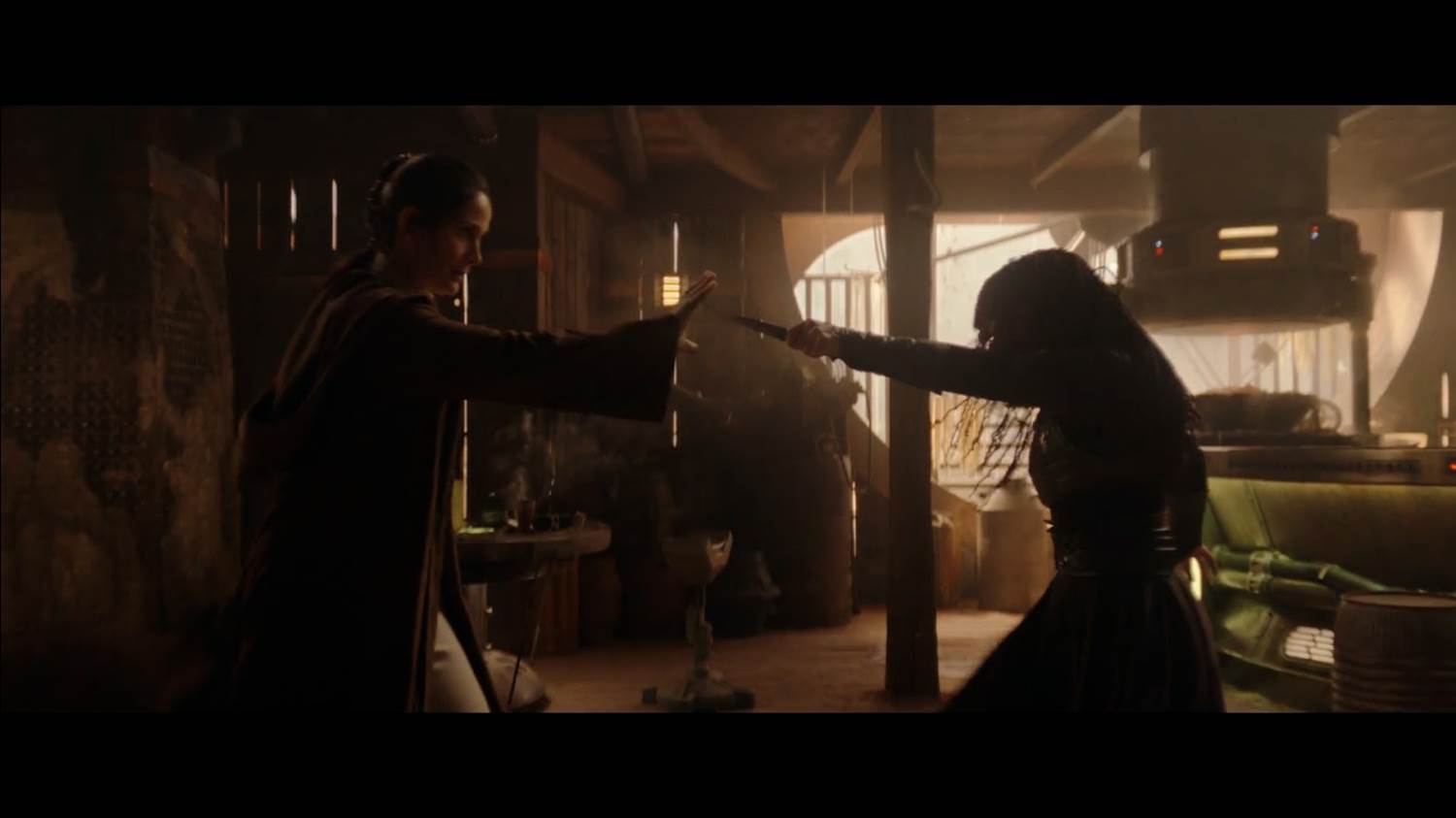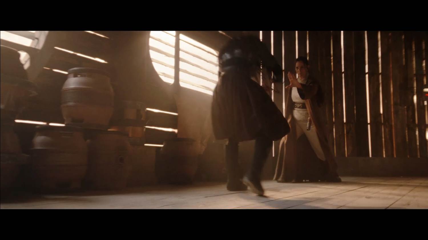 Shot #36: More of the fight between Indara and Mae. The former uses the Force to stop the latter’s blade. We get a slightly better look at their surroundings.