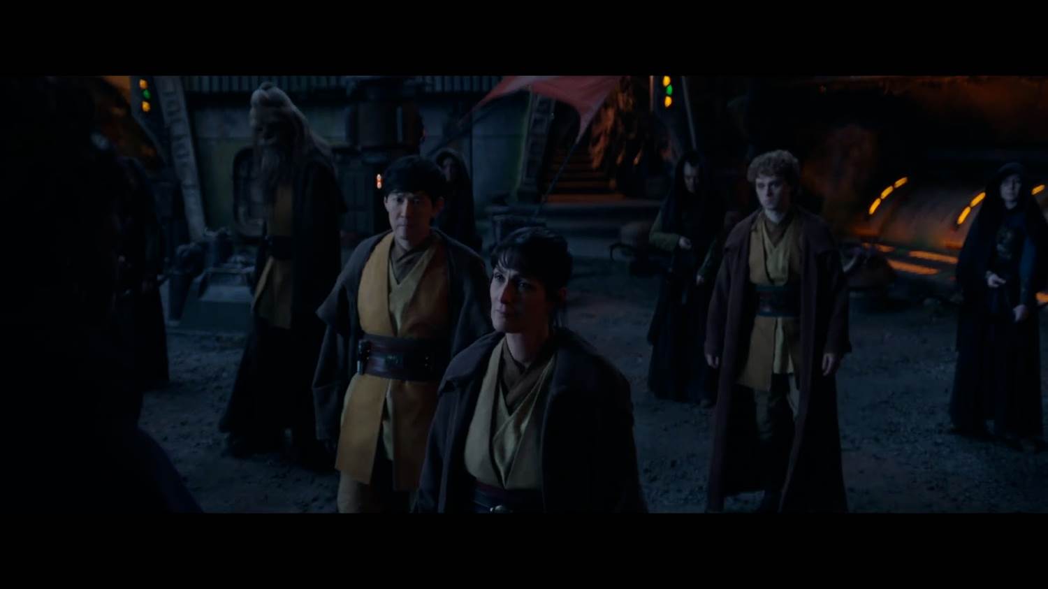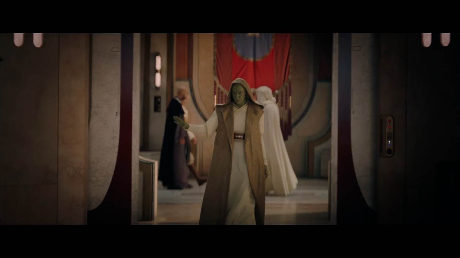 Shot #11: Coruscant again, only this time behind the Younglings stands Mirialan Jedi Master Vernestra Rwoh (played by series creator Leslye Headland’s wife Rebecca Henderson from Russian Doll). Vernestra has been a key player in the Star Wars: The High Republic novels since that series launched in 2021, though those stories began when the character was much younger.