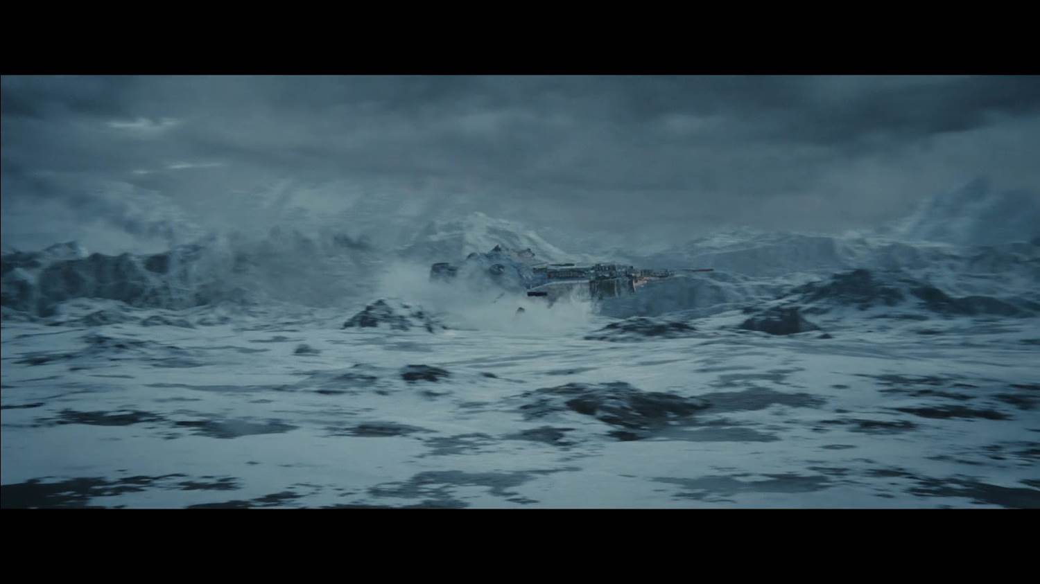 Shot #42: A ship crash-lands on an icy planet. It looks similar to the one we saw approaching the island earlier in the trailer.
