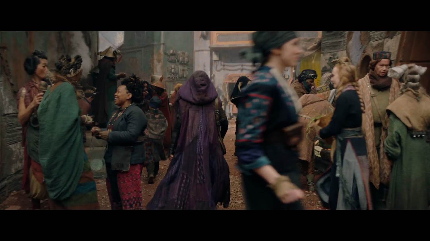 Shot #39: This is pretty interesting. Lucasfilm identifies this character as Mother Aniseya (Jodie Turner-Smith from Queen & Slim) and describes her as “the leader of a coven of witches." There’s no indication as to whether these witches are connected to the Dathomiran Nightsisters.