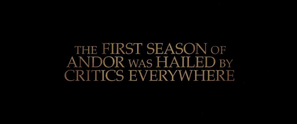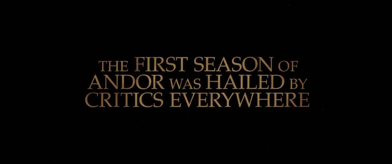 Title card: “THE FIRST SEASON OF ANDOR WAS HAILED BY CRITICS EVERYWHERE"