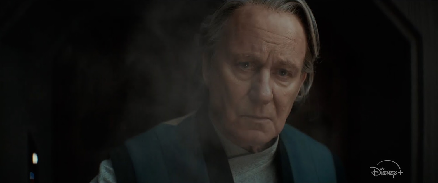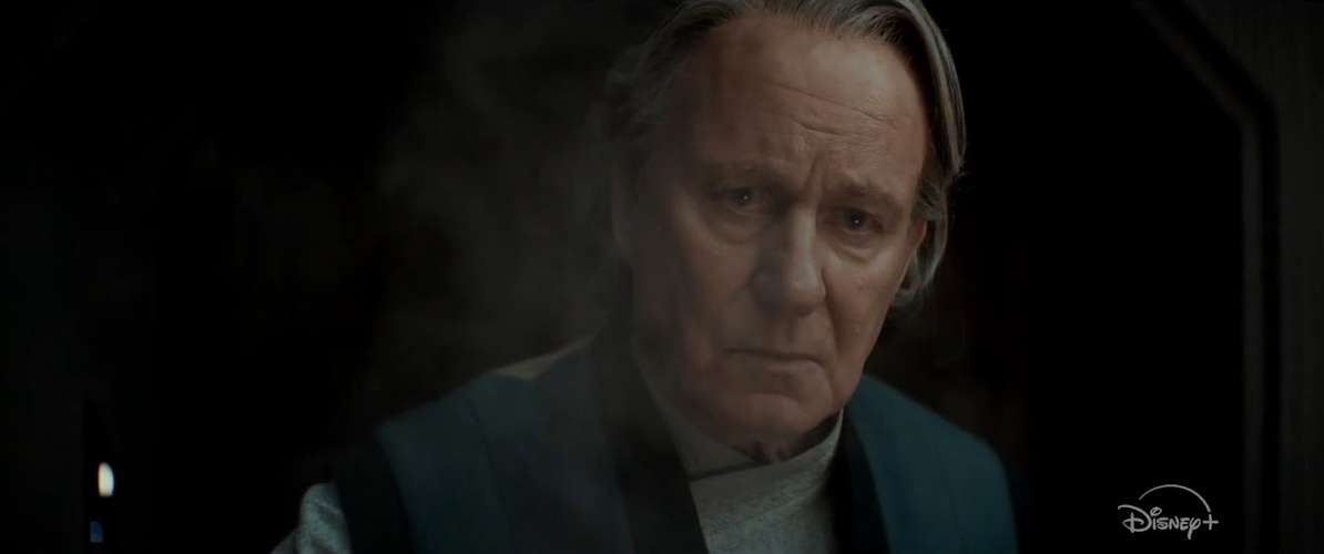 Shot #15 - Starts out of focus, then sharpens to reveal Luthen Rael (Stellan Skarsgard) looking out through smoke against a dark background.