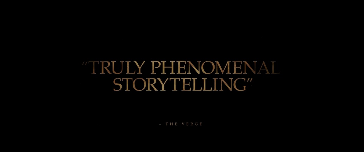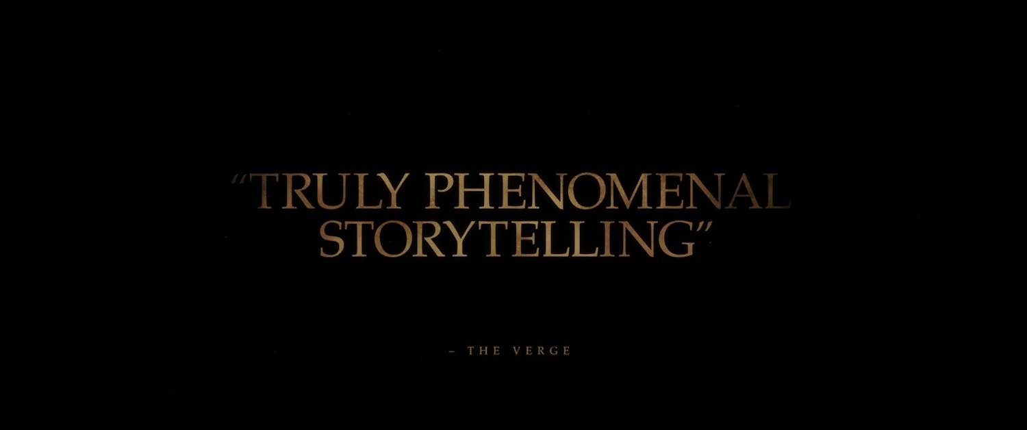 Title card: “‘TRULY PHENOMENAL STORYTELLING’ - THE VERGE"