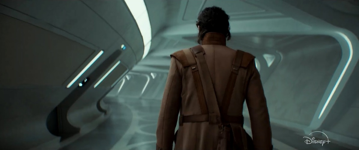 Shot #3 - Similar to the first shot but closer and at a slighter higher angle, Cassian walks through a different location– could be an Imperial hallway. Now he’s wearing a tan-and-brown jacket with lots of straps.