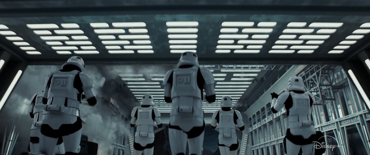 Shot #33: From behind, six stormtroopers run toward an Imperial hangar. I bet this is the same action sequence as in shot #27.