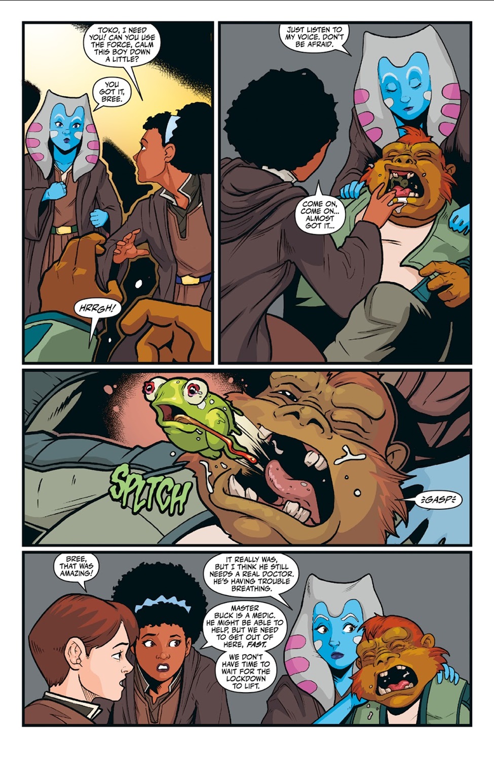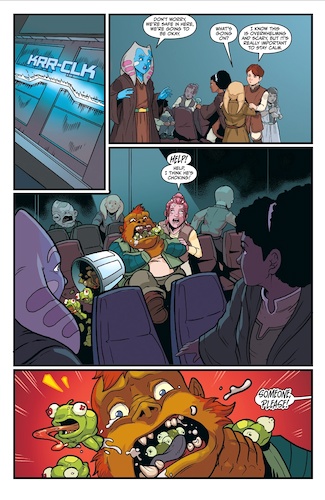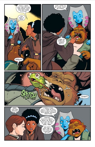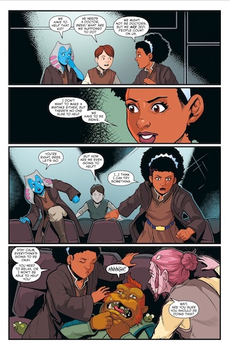 Up third is writer Zoraida Córdova’s continuation of the adventures of Churo the Hutt from her middle grade novel Star Wars: The High Republic - Beware the Nameless. In this story Churo travels to the planet Eroudac (which was first mentioned in Star Wars: Galaxy’s Edge - A Crash of Fate, also by Córdova) in search of a flower that may help heal his homeworld of Nal Hutta from the devastation of the plantlike monsters called the Drengir. Churo encounters a wayward Cerean Jedi Knight named Rune, who uses the Force to help the young Hutt access a mountain cave that legend says contains the long-absent flower, but once inside Churo discovers a startling revelation that has him second-guessing his quest. I really liked the vibrant art in this one, by illustrator Juan Samu (Star Wars: Tales from the Rancor Pit) and it was a lot of fun to see Churo again– I can see him becoming a fan favorite before The High Republic wraps up completely.