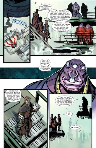 Reath overcomes this challenge as well, allowing him to claim the rod, even “rescuing" the persnickety droid’s head along the way. Now, armed with the weapon they need to confront the Nihil and neutralize Marchion Ro’s link with the Nameless creatures, the three adventurers head back toward Coruscant with newfound confidence in the battle against darkness. I definitely enjoyed this miniseries overall, though this final issue had some dialogue that I found to be alternately repetitive and contradictory, almost as though writer George Mann ended up with a few more pages, panels, and word balloons to fill than he thought he would have. Otherwise I’d say this is really strong stuff, and illustrator Vincenzo Federici (along with colorists Francesco Segala and Gloria Martinelli) delivers some very moody, atmospheric art that draws the reader into this world and its underground mysteries. I’m looking forward to seeing what happens with the Rod of Ages next, as I’m certain after all this buildup it must be set to play a significant role in The High Republic’s upcoming conclusion.