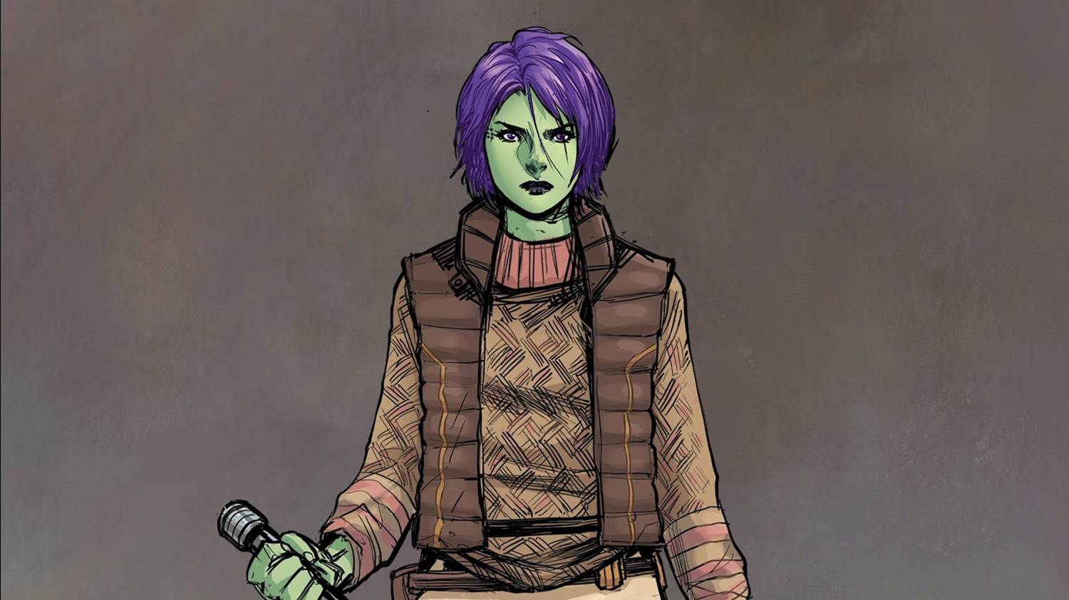 This novel focuses on three main protagonists– which is a welcome number compared to some of the overstuffed adult-targeted High Republic books– plus a few supporting cast members. There’s youthful Mirialan Jedi Knight Vernestra Rwoh (who we learned at last year’s Star Wars Celebration will be featured in the upcoming live-action Disney+ series Star Wars: The Acolyte), who has spent the year since the fall of Starlight Beacon in seclusion on a remote planet, finding her connection to the Force again. Then there’s young genius Avon Starros, the daughter of disgraced Senator Ghirra Starros and an engineering student at a university on Coruscant under an assumed name. And lastly we’ve got former Tiikae deputy Jordanna Sparkburn, who now travels around the galaxy running odd jobs for Pirate Queen Maz Kanata with her girlfriend Sylvestri Yarrow and their pet vollka Remy. As you might guess by the attractive cover illustration, Defy the Storm sees these three characters venturing into Nihil territory together, but first it has to gather them all in the same place.