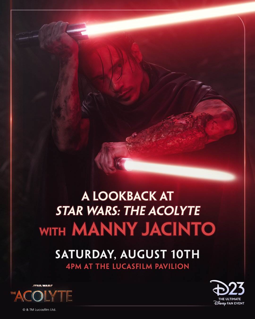 A Lookback at Star Wars: The Acolyte with Manny Jacinto (4:00 p.m. at the Lucasfilm Booth) - “Join The Acolyte’s Manny Jacinto as he reflects on the first season of the series and reveals new insights on the Stranger."