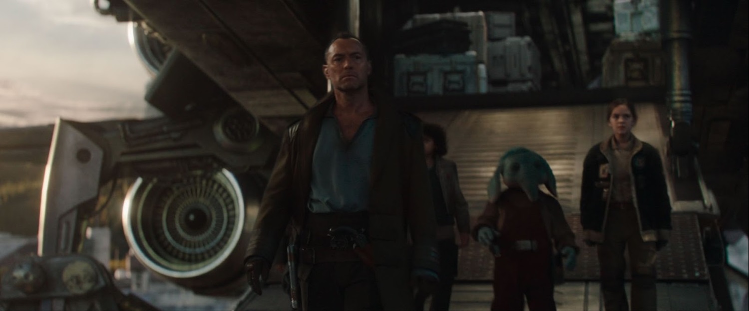 At the end of last week’s two-episode premiere of Skeleton Crew, our four protagonists had met the character named Jod Na Nawood (played by Jude Law), who can evidently use the Force and claims to want to help the children escape from the brig at the Port Borgo space station. But episode 3 begins back on At Attin, where Wim’s father Wendle (Tunde Adebimpe) and Fern’s mother Fara (Kerry Condon) have partnered with the parents of Neel and KB to try and figure out how to get their kids back home. We also learn a bit more about how cloistered this planet is from the rest of the galaxy, while back at Port Borgo, Jod and the others sneak their way back to the ferry and off to the Onyx Cinder, which looks gross and dilapidated even to an outcast like Jod. But once they’re back aboard, the kids refuse to leave the station without SM-33 (Nick Frost)... though it takes some convincing to get Jod to head back and retrieve the droid.