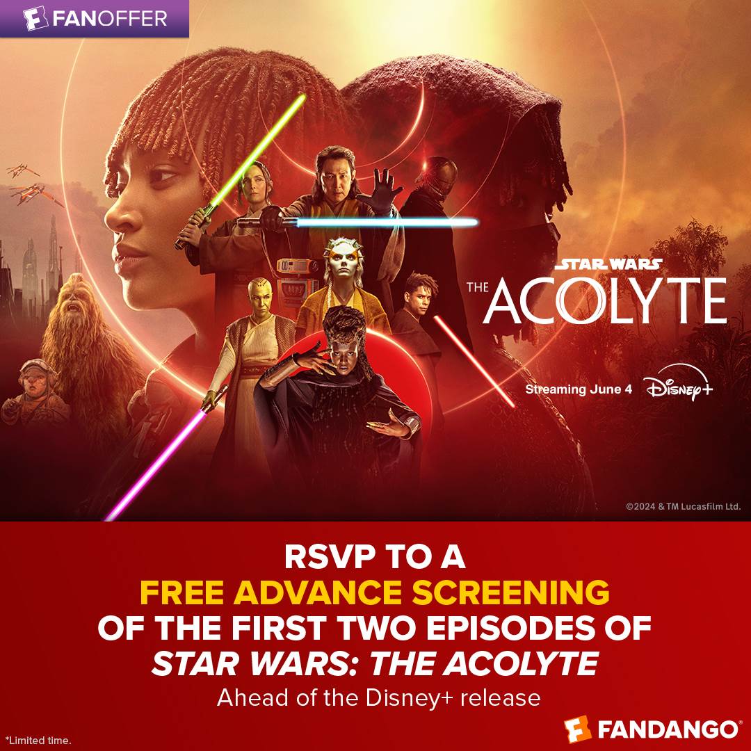 - On June 3rd, Star Wars fans can be among the first to see The Acolyte in theaters with a special two-episode screening at select locations.