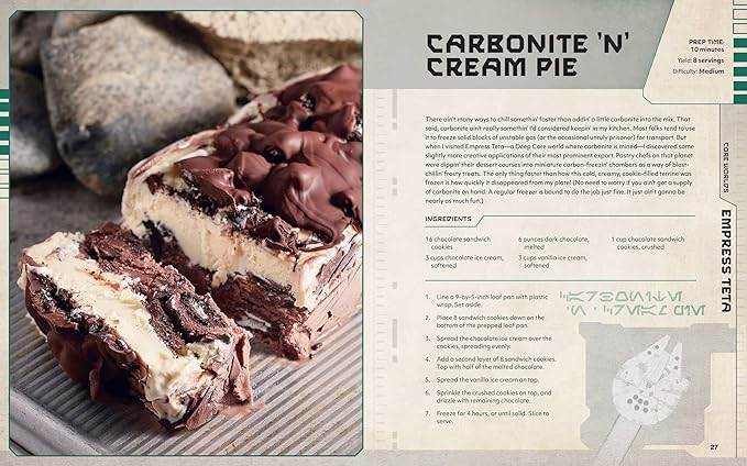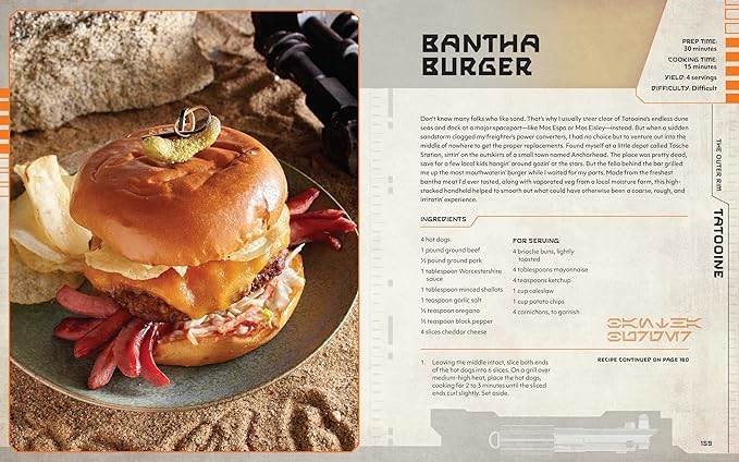 Star Wars: The Ultimate Cookbook is a follow-up to Star Wars: Galaxy’s Edge - The Official Black Spire Cookbook and Star Wars: The Life Day Cookbook, which means it is written in-universe by Chef Strono “Cookie" Tuggs (a character created for the menagerie of Maz Kanata’s castle in Star Wars: The Force Awakens but who has since been incorporated into the lore for the Star Wars: Galaxy’s Edge lands at Disney Parks), though in reality the book was written by Jenn Fujikawa and Marc Sumerak, who have both contributed to Star Wars publishing a number of times before. Tuggs, however, is the one credited for the tome’s introduction and chapter synopses, which take us around the Star Wars galaxy from the Core Worlds to the Colonies, and the Inner Rim to the Outer Rim, in search of the most delicious dishes from each planet the Artiodac has visited.