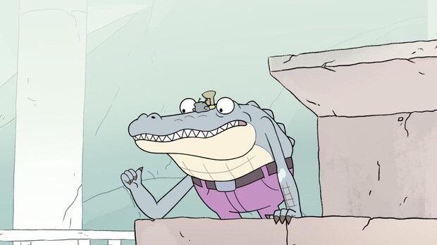 They didn’t come this far to fail though, and with the creative ingenuity of using those palm tree rockets, they are able to get to the crystal-bearing meteorite in the middle of the lava lake. However, they now don’t have a way back across the lake. Fortunately, with the help of one of those giant shipwreck-living hermit crabs, and Francis’ appealing orange slices, they are able to make it back to Dr. Lullah.