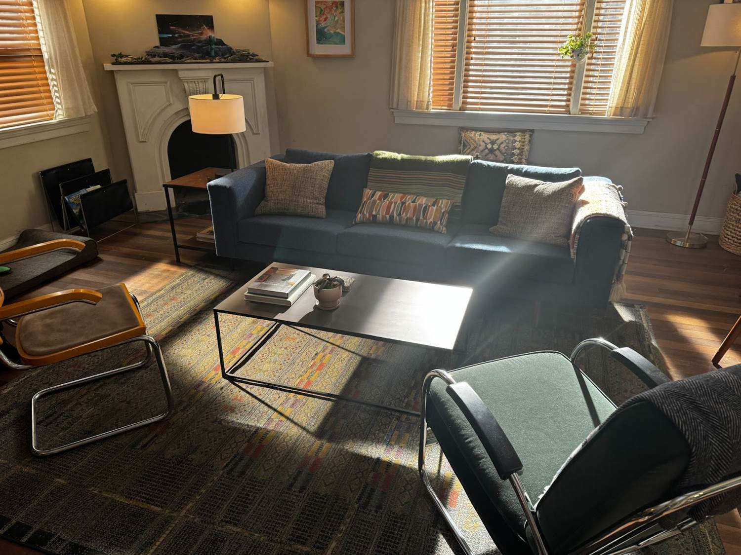 I also loved the little ways each character is portrayed through their space. Edward’s room, for example, is pristinely tidy. And while his dog Arthur had the day off, signs of his existence were all over the set, including dog beds, toys, and food and water bowls.