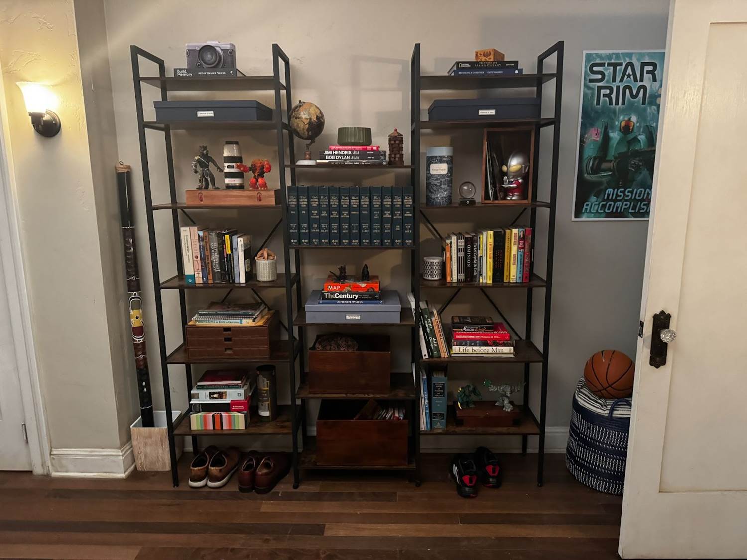 Inside Edward’s neatly curated bedroom is another bookshelf.