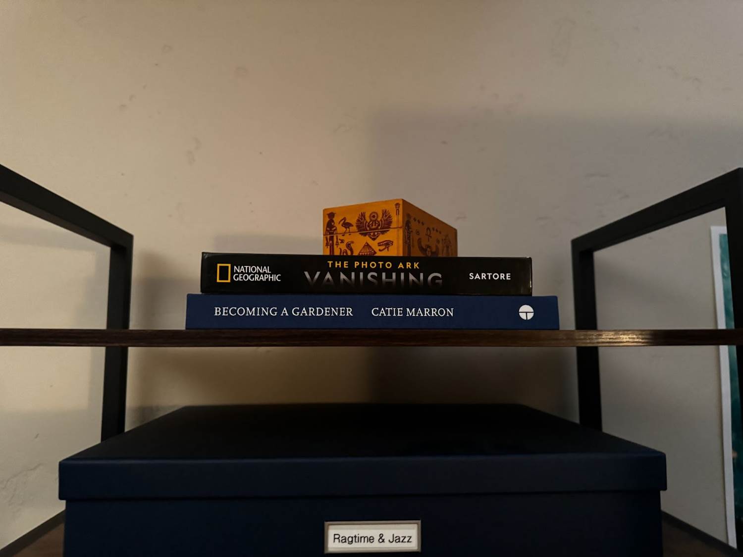 Prominently displayed in his collection is a copy of The Photo Ark: Vanishing by Joel Sartore.