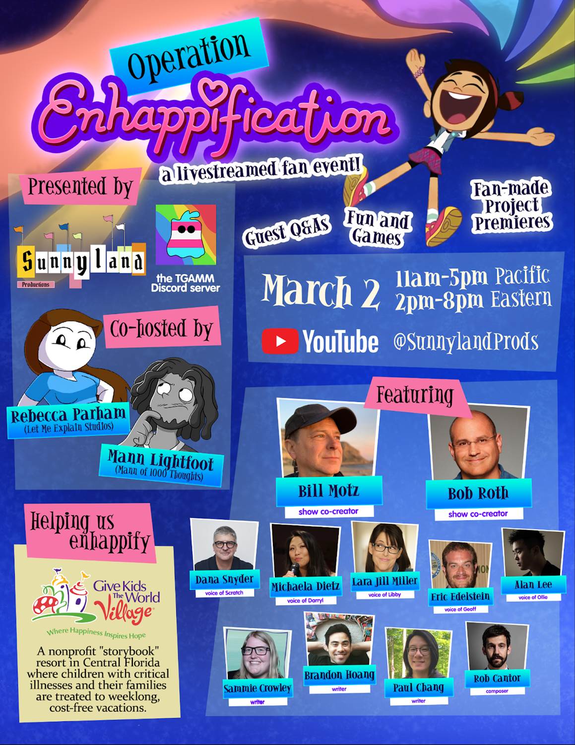 - “Operation: Enhappification," a 6-hour charity livestream dedicated to the series, will be held on the March 2nd from 11:00 a.m. to 5:00 p.m. (PST) on YouTube Live, as jointly announced by commentary-based YouTube channel Sunnyland Productions, and fan-run group Ghost and Molly McGee Discord, more than a month after the show ended its two season run.