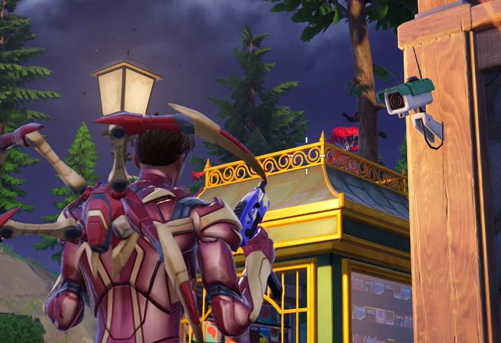 - Destroy surveillance cameras – Next, you’ll head back to Doomstadt to destroy security cameras around the small town. Once you find one, you can shoot or pickaxe the cameras until you break them. You’ll have to break 5 surveillance cameras around Doomstadt.