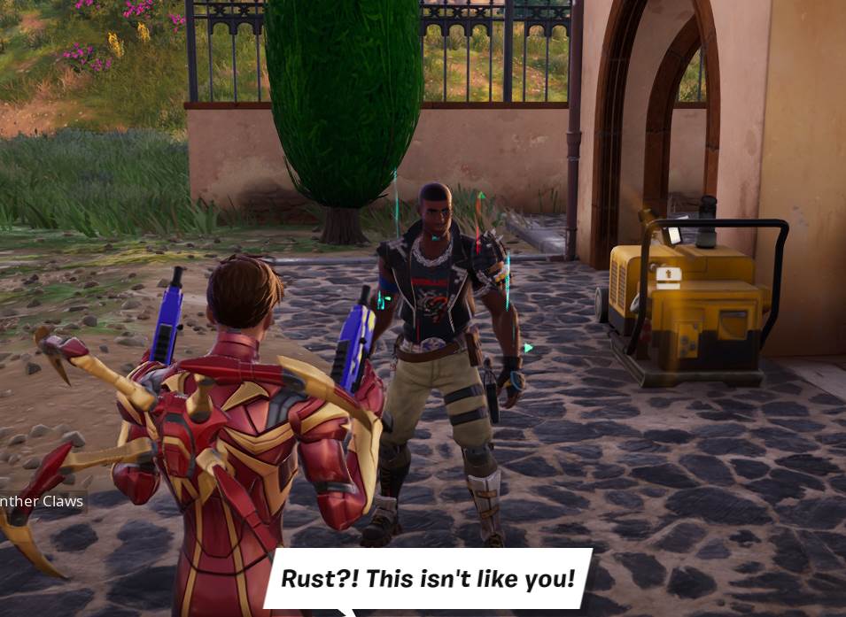 - Wake up brainwashed characters or eliminate hired followers – Next up you’ll have to save several of Fortnite’s Non-Playable Characters (NPCs). Hypnotized by Mysterio’s illusions, Rust, Peabody, and Brite Raider all believe in Dr. Doom’s plan for the island. Again, this quest is very straightforward. Head to Reclaimed Villa, Pea Bois HQ, and the dock south of Megalo Depot and simply follow the dialog prompts to snap them out of it. Hope will give you a call after talking to the last NPC. Her impassioned rant surrounding the immorality of Doom and Mysterio’s mind manipulation proves to players that she's ready to take out Dr. Doom.