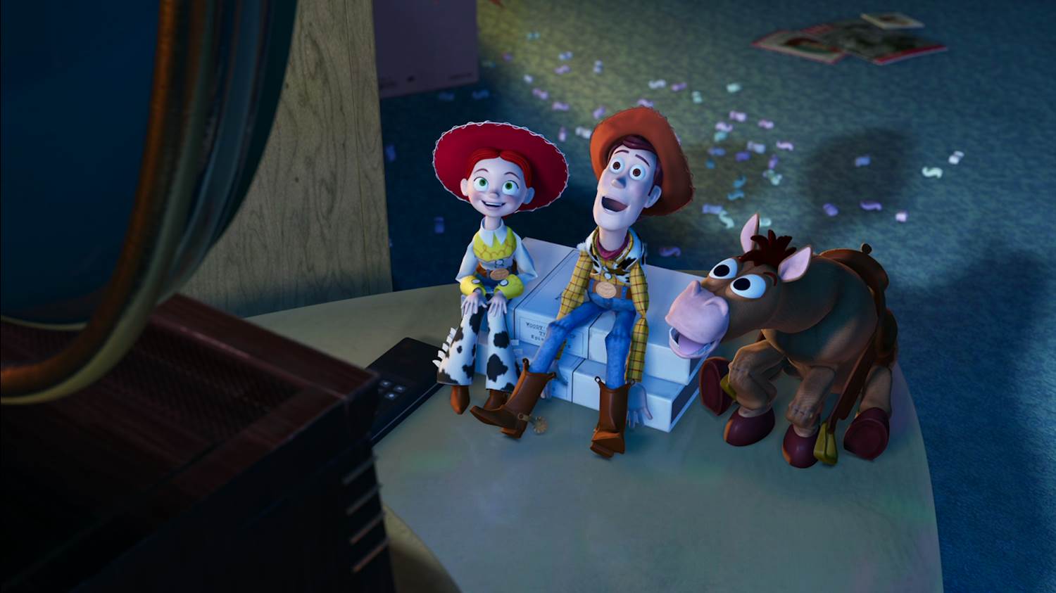 - Along the way, we discover Woody’s origins, and his past connection to a television series where his co-stars become new toy friends - Jessie and Bullseye - and perhaps even the greatest ASMR scene put to film when he is restored to his former glory.